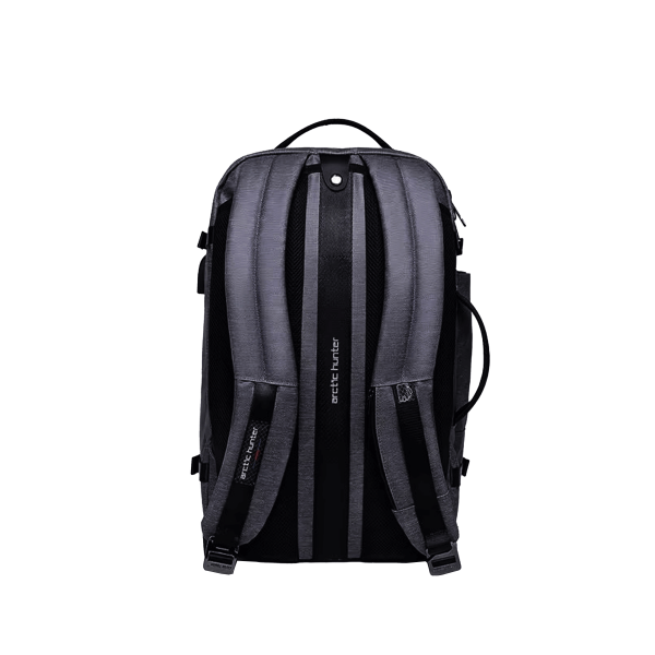 Vantagens da mochila Arctic Hunter Sterling por fora: -A proteção contra água e danos mecânicos é composta por materiais de alta qualidade, almofadas de amortecimento e tecido repelente à água. -A proteção contra falsificação é o hardware original do Arctic Hunter para cada série. -Design é praticidade combinada com estilo empresarial clássico. -A ergonomia são confortáveis alças principais removíveis com sistema de distribuição de peso e material respirável nas áreas de contato com o corpo para melhor ventilação. A funcionalidade é uma porta USB / fone de ouvido combinada com dois cabos, uma alça especial para prender na alça de uma mala, um bolso para garrafa, um bolso para alça para cartão e duas alças convenientes para transportar na posição vertical ou horizontal.